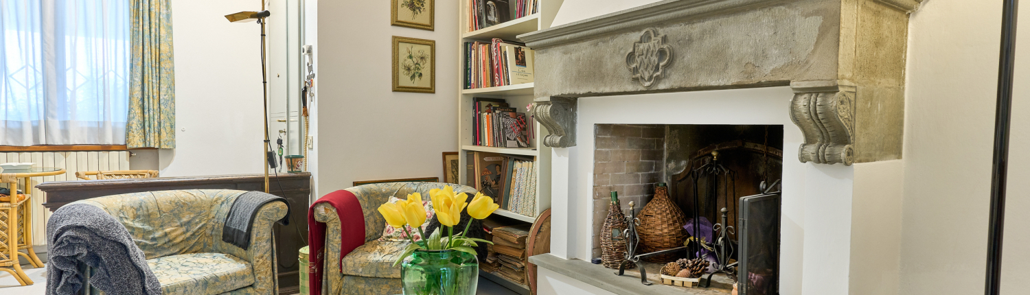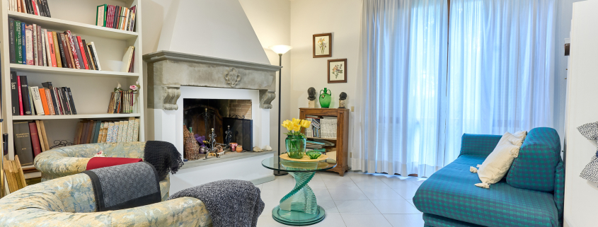 L’ingresso indipendente conduce a un accogliente soggiorno impreziosito da un caminetto con frontone in pregiata pietra serena collegato al giardino da una portafinestra . A completare il piano troviamo un bagno, la lavanderia, un pratico ripostiglio e un locale di sgombero collegato internamente.