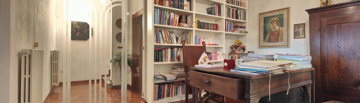 Una splendida scala, elemento architettonico di grande eleganza, conduce al primo piano dove si trovano un grande salone, uno studio e un ripostiglio, ideali come zona living o area lavoro.