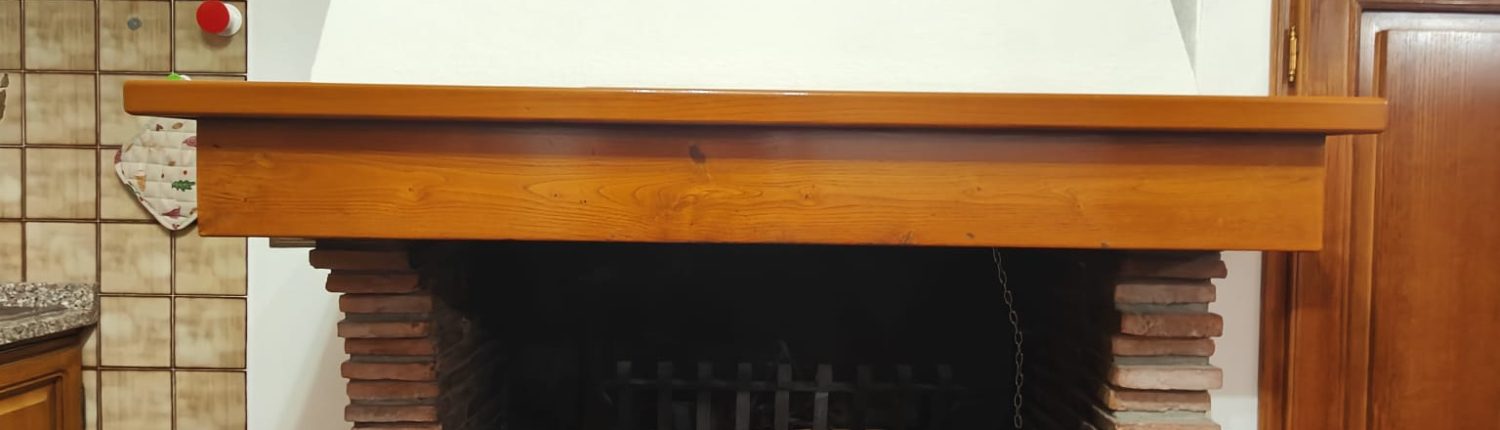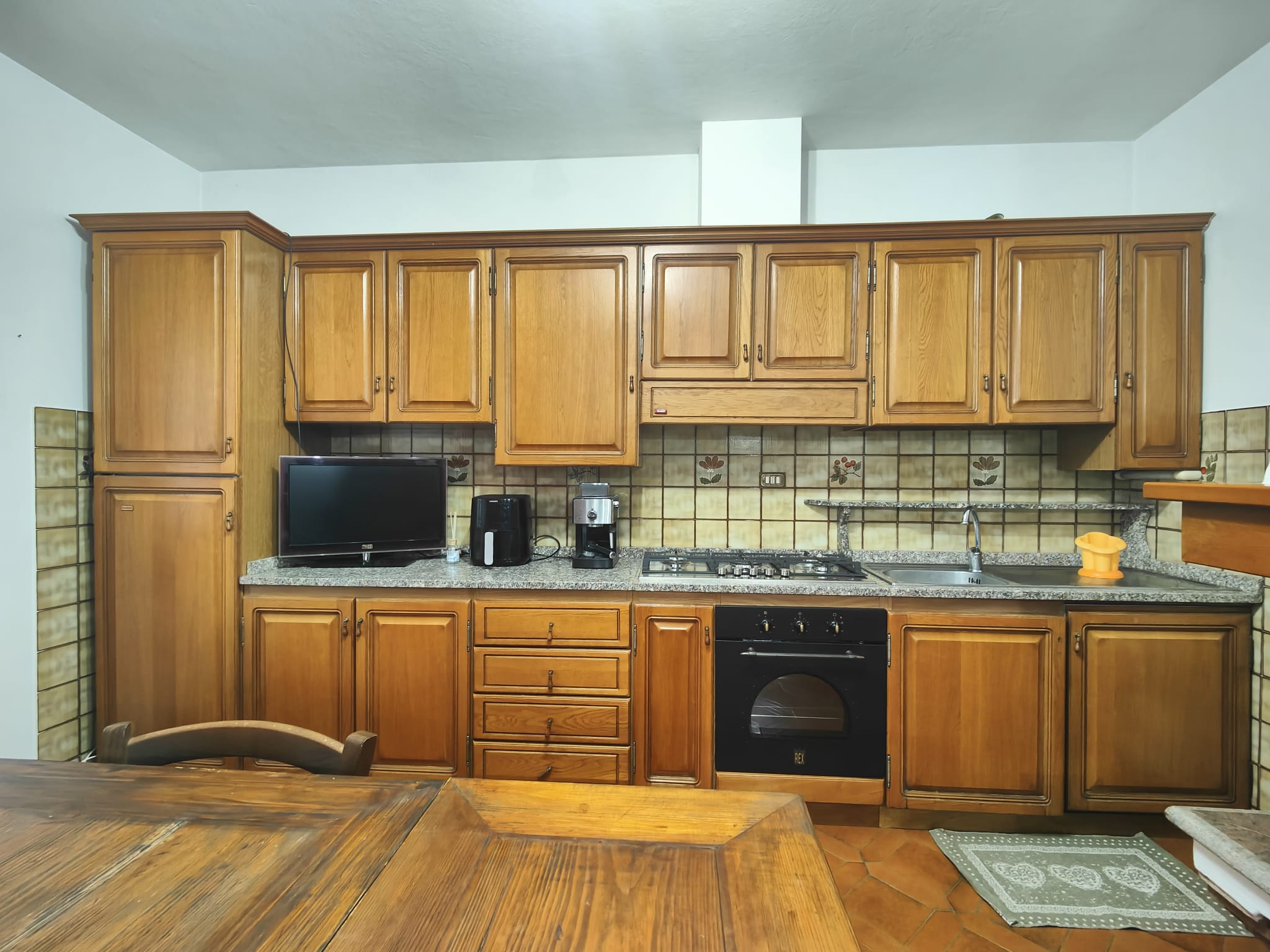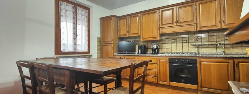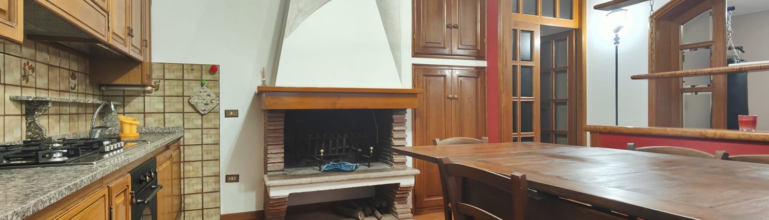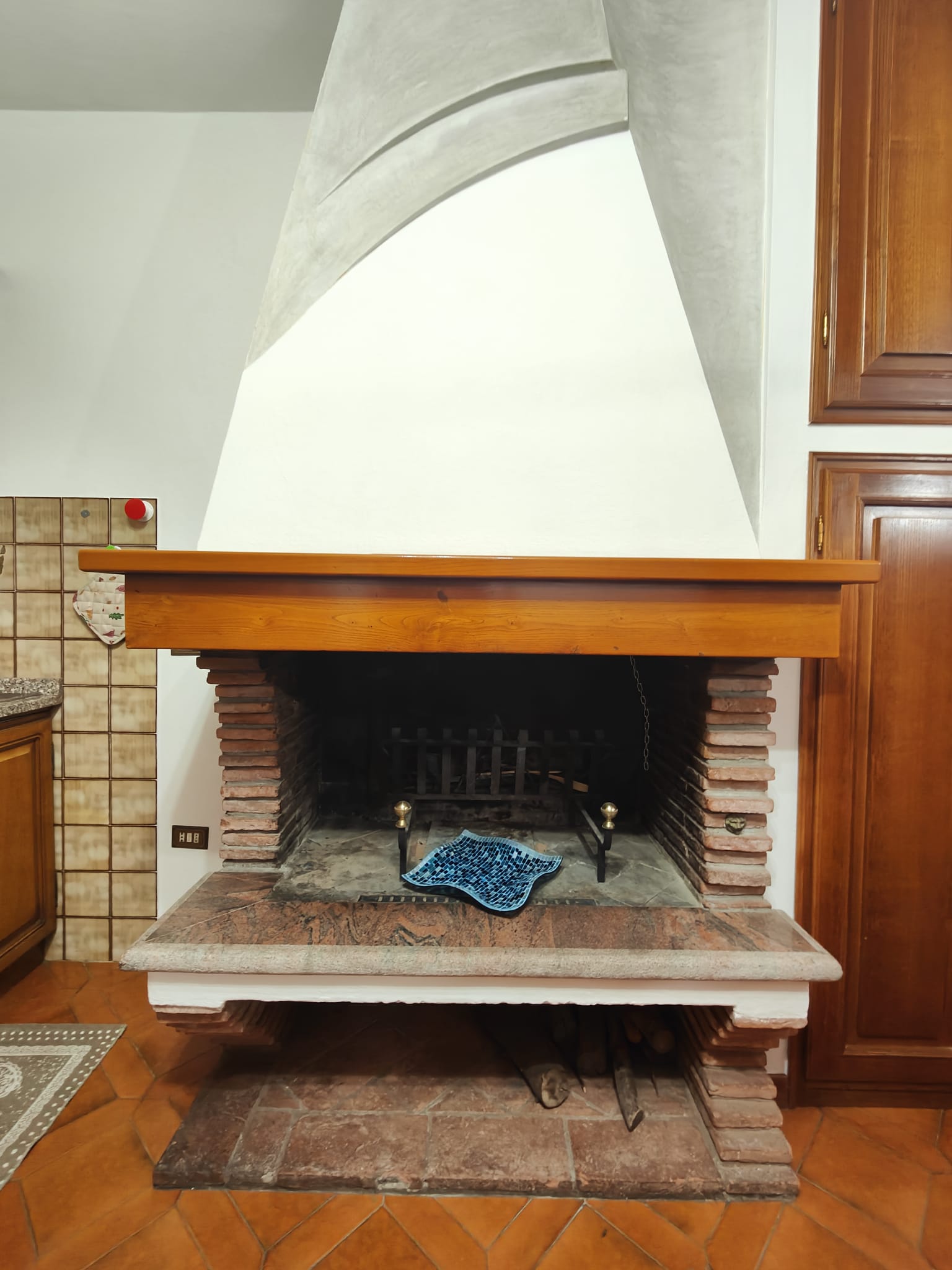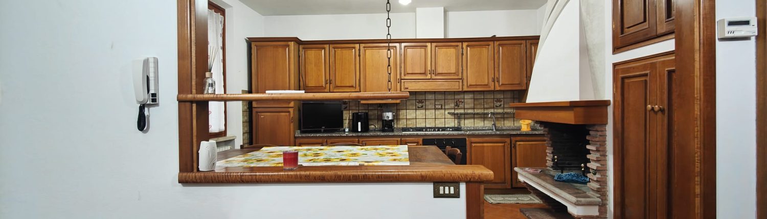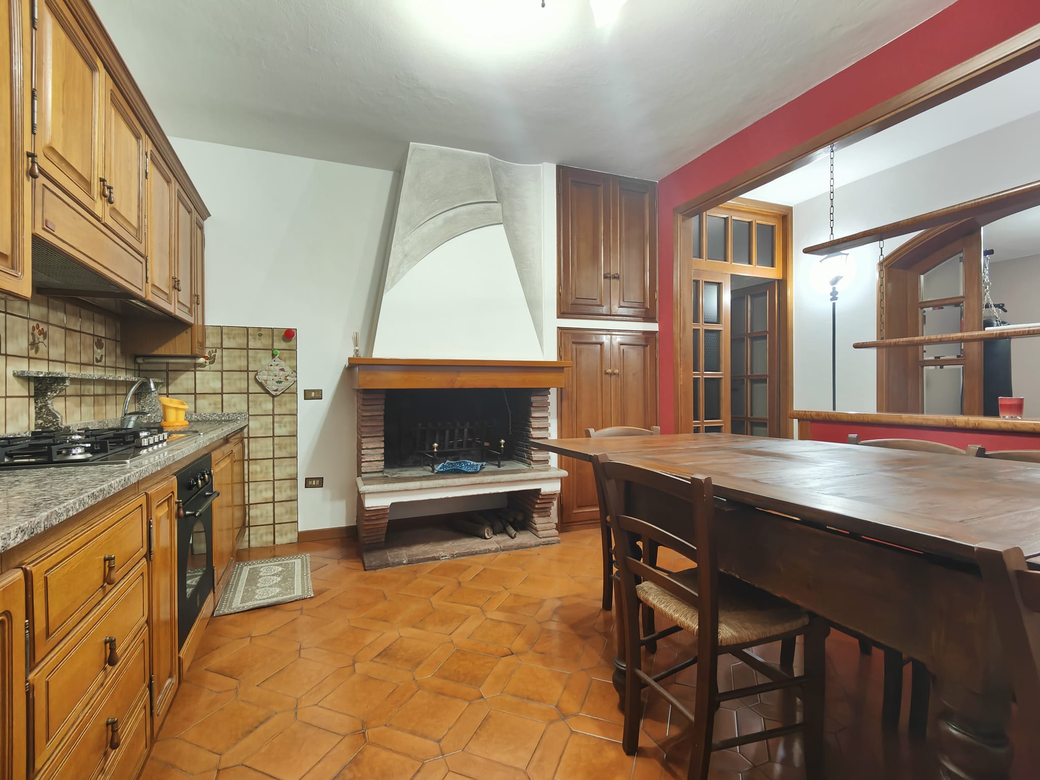 Ampia cucina abitabile con caminetto, collegata al soggiorno