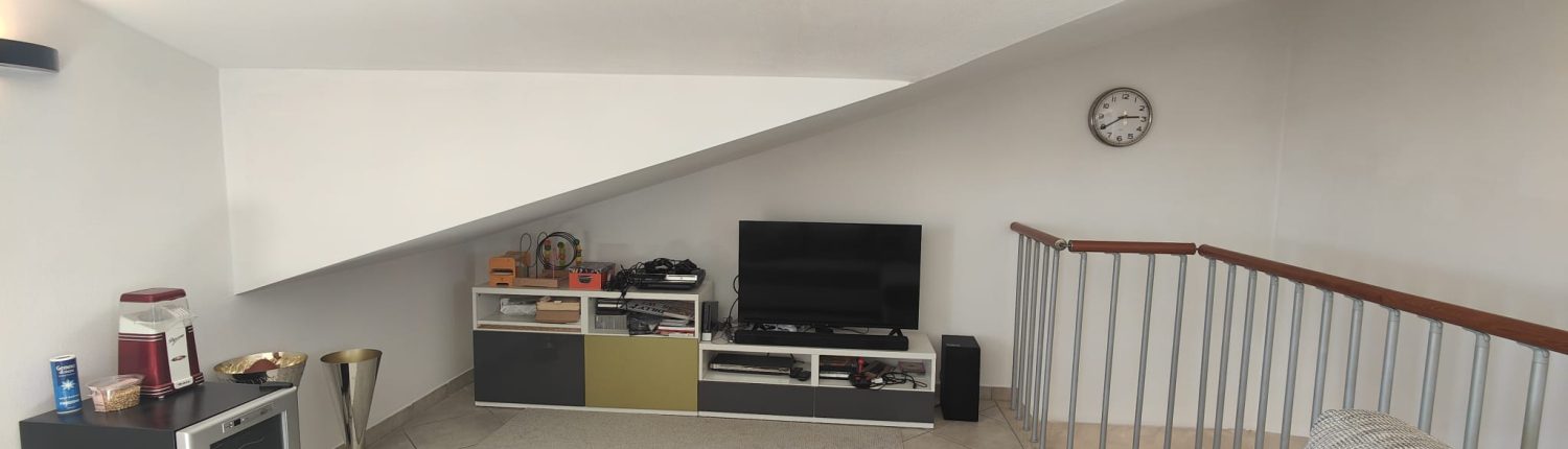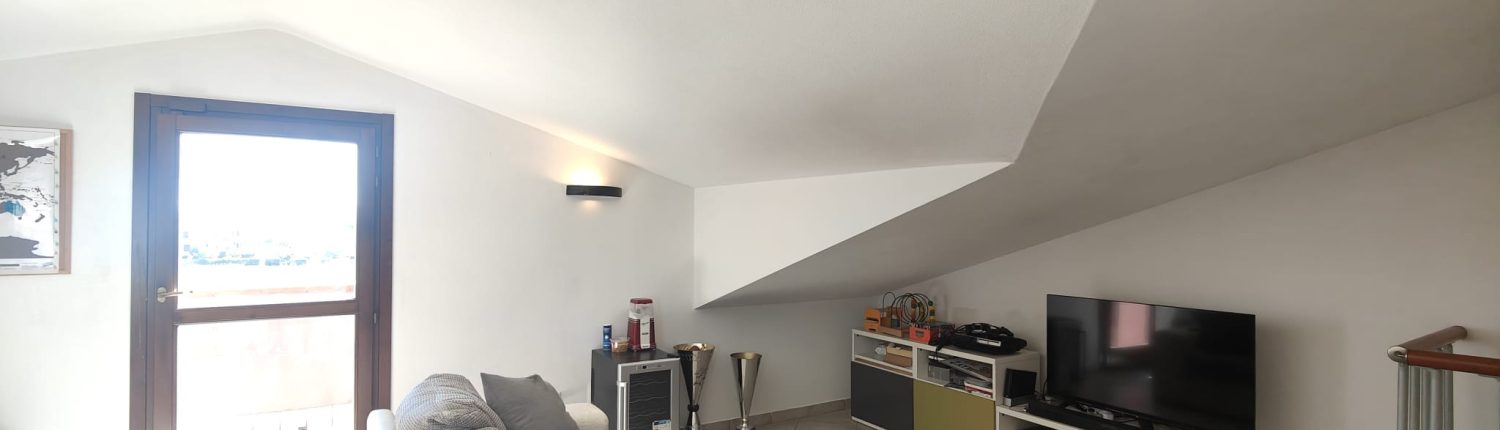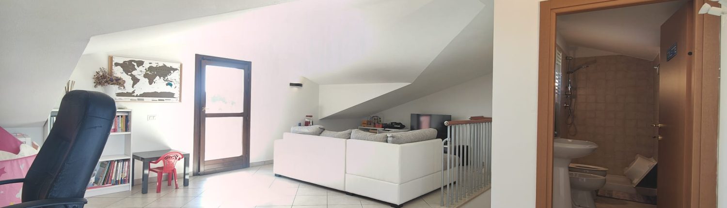 Dal soggiorno, una comoda scala interna conduce alla grande mansarda, ideale come studio, area relax o ulteriore zona living, completa di bagno finestrato con doccia e due terrazze.