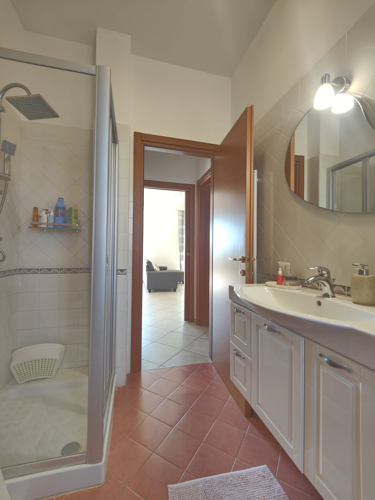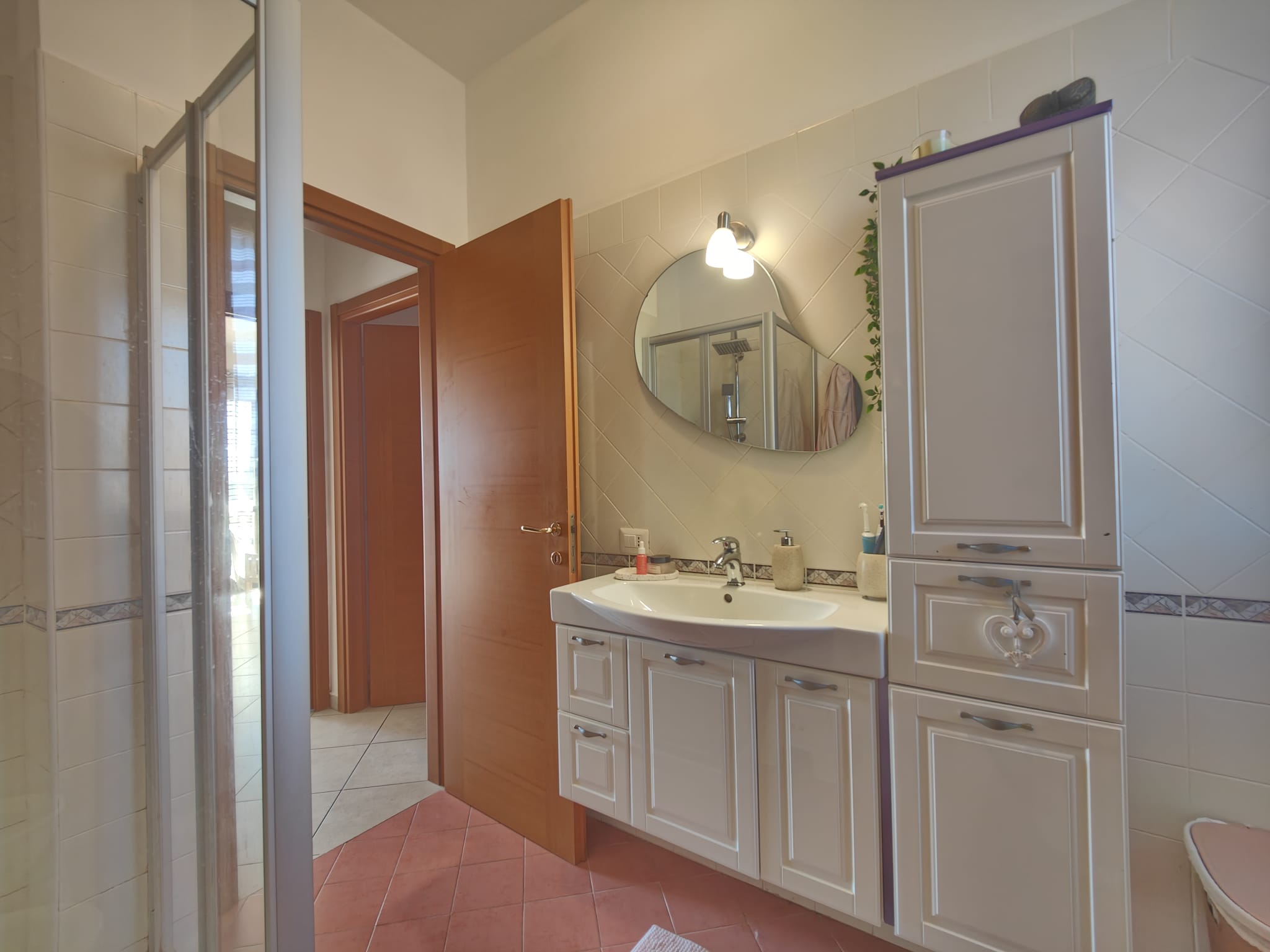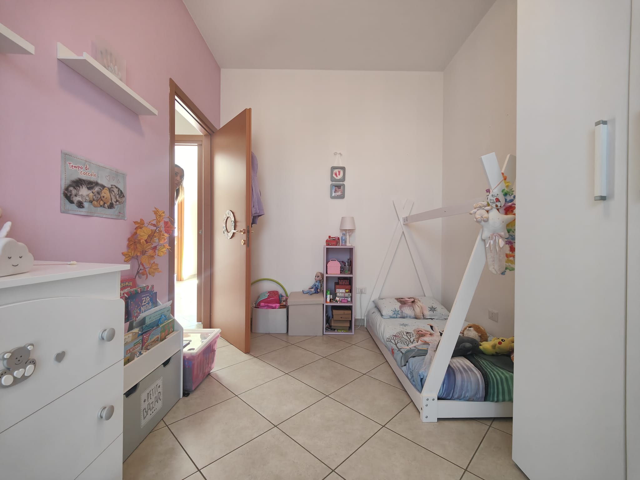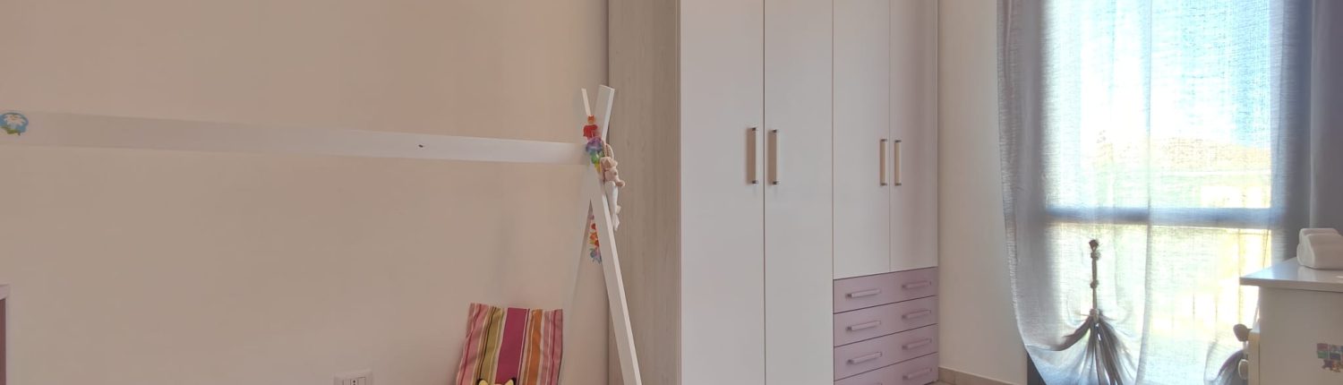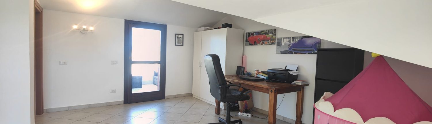 Una camera matrimoniale con accesso a seconda terrazza, cameretta anch’essa con accesso alla  terrazza e bagno finestrato con doccia.