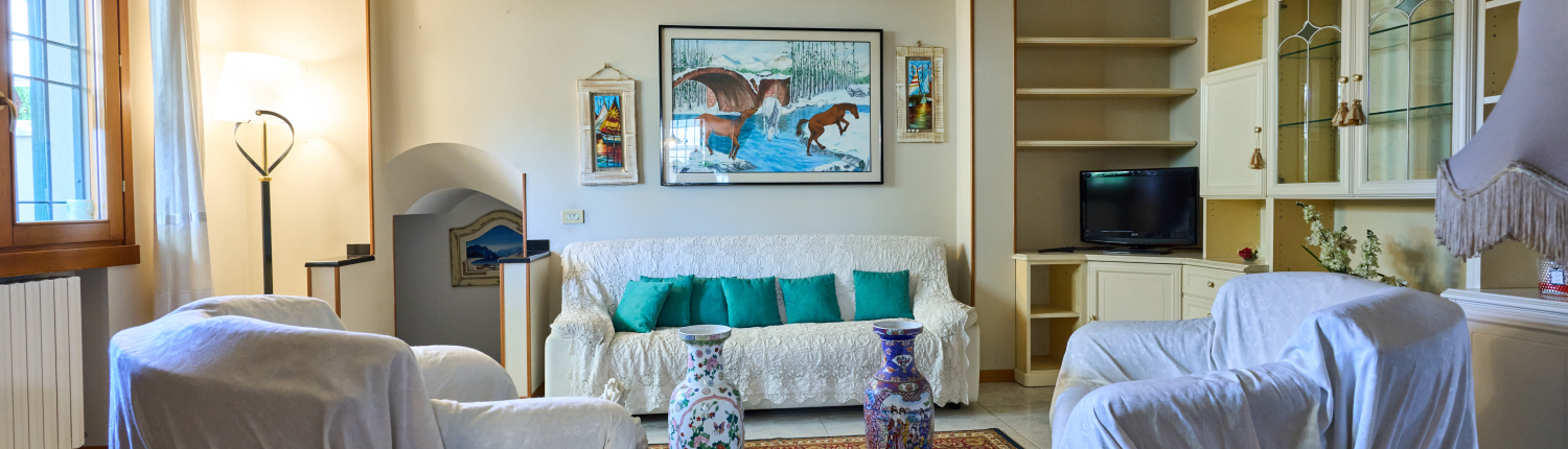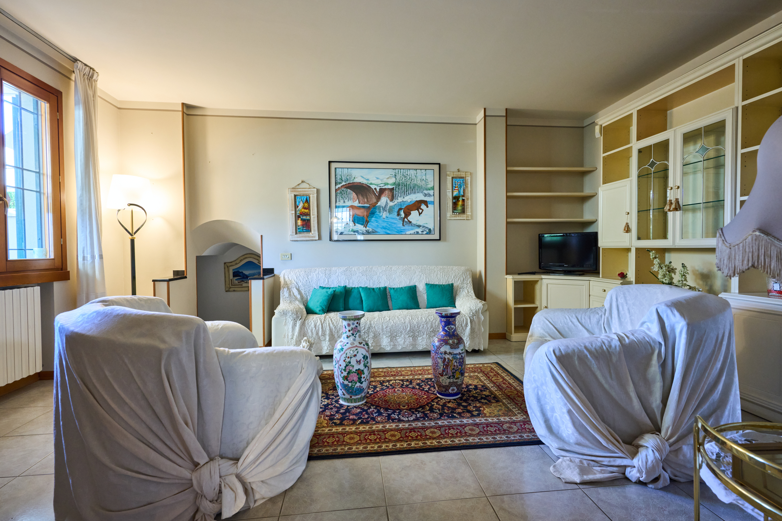 Si accede all’abitazione da un cancello privato che conduce al giardino, curato e riservato. Da qui, pochi scalini portano al terrazzo d’ingresso e alla porta blindata che apre su un ampio e luminoso soggiorno, perfetto per accogliere famiglia e ospiti.