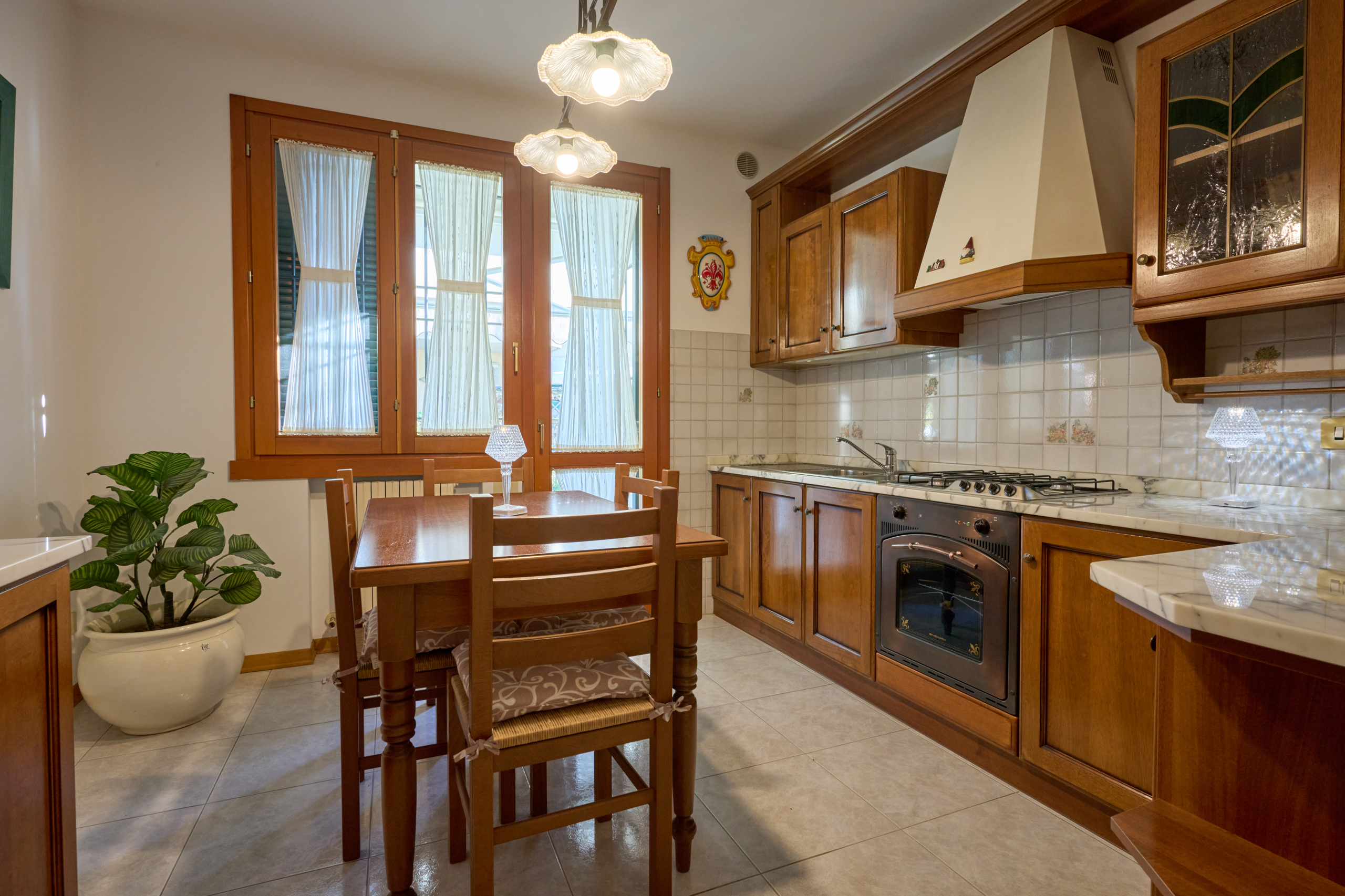 La cucina abitabile, spaziosa e funzionale, dispone di accesso diretto alla terrazza, ideale per pranzi e cene all’aperto.