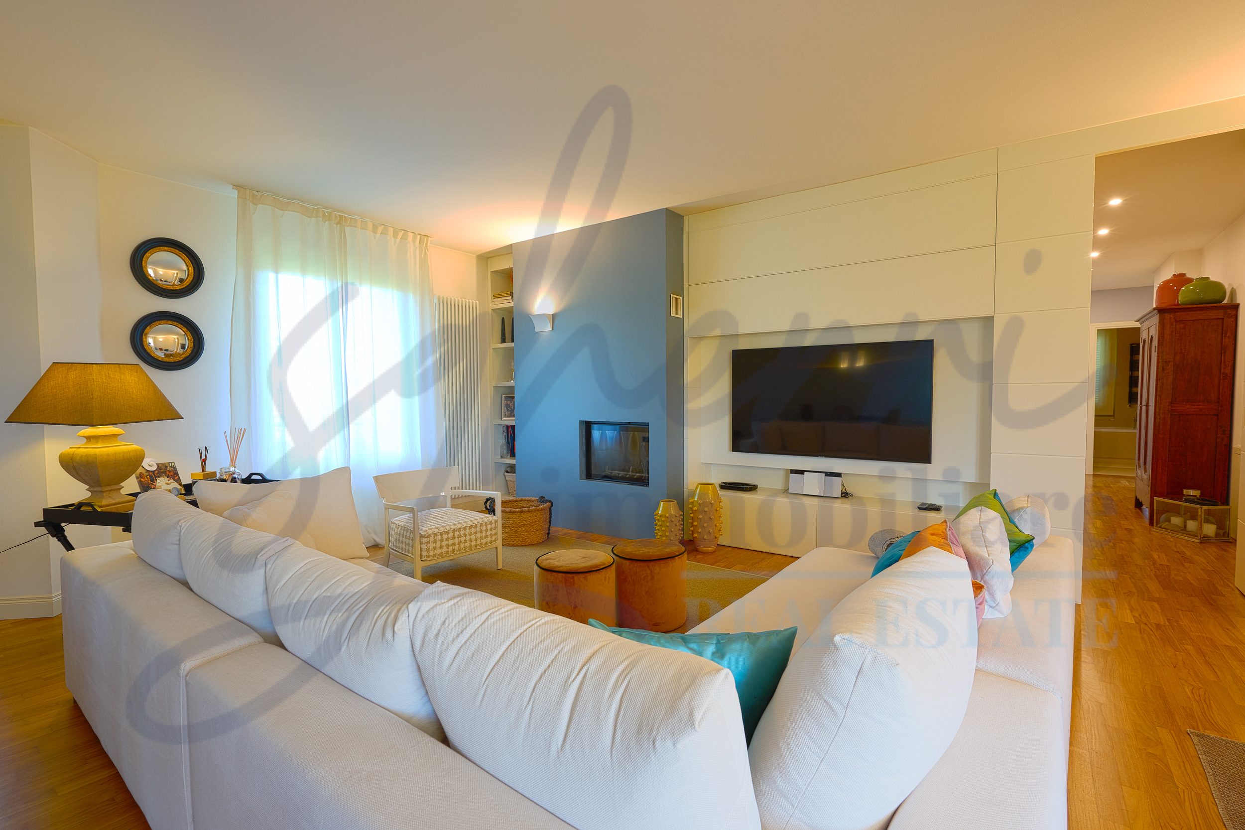 L’appartamento si adagia tutto su un piano, è di ampia superficie e si mostra a chi entra in tutta la sua eleganza e luminosità. La zona giorno caratterizzata da un grande soggiorno con grande divano e da una ampia zona pranzo ha due pareti arredate con boiserie “nasconde” sorprese ovvero un guardaroba, il locale tecnico/ripostiglio, le porte della cucina e dell’ingresso della zona notte e per finire, un armadio.