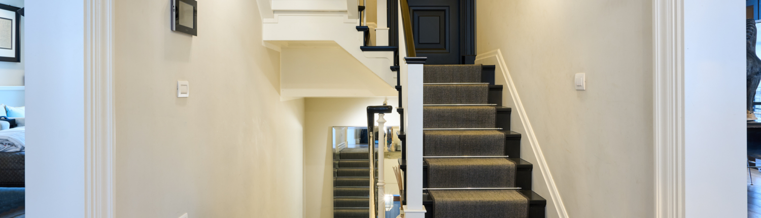 L’ingresso indipendente introduce in un ampio e raffinato disimpegno, impreziosito da una scala di design che conduce al piano primo, dove si sviluppa l’intera zona giorno insieme allo straordinario spazio outdoor.