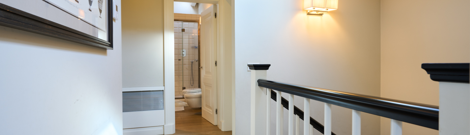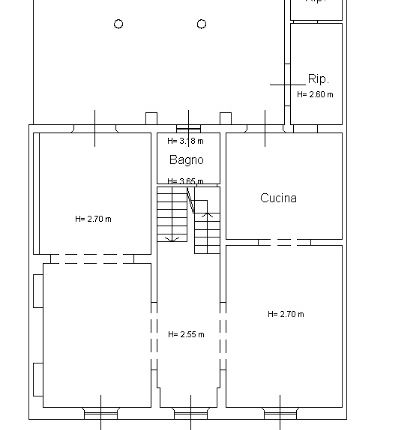 Attraverso la scala interna si raggiunge il bagno di servizio con doccia; proseguendo al piano secondo troviamo: