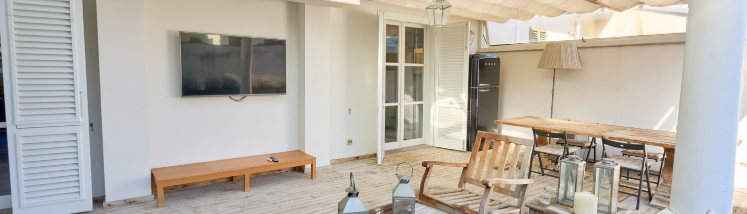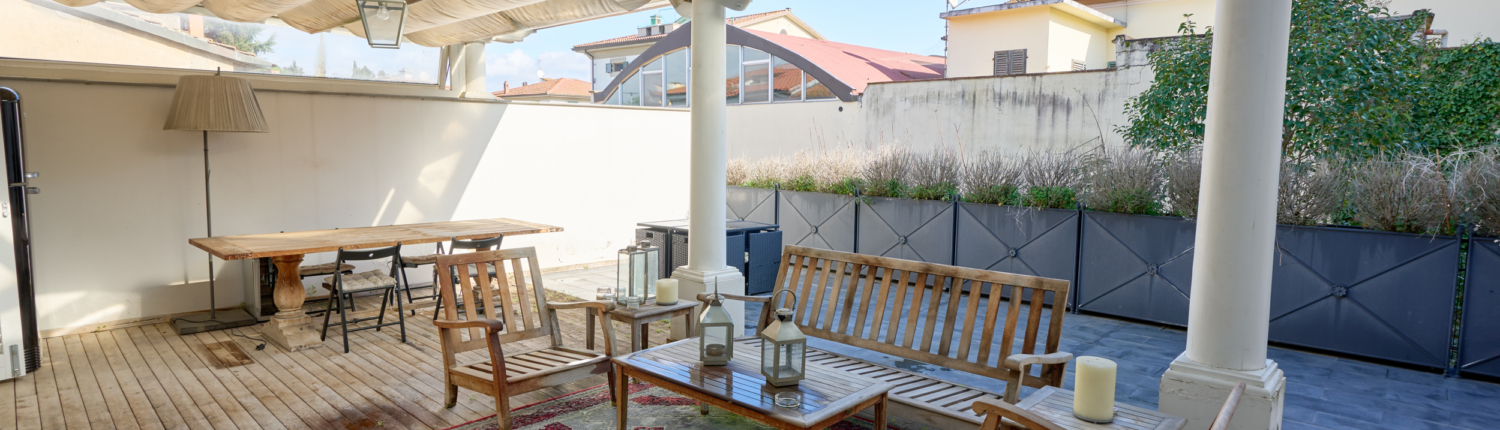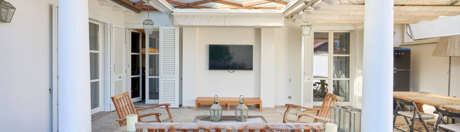 Dalla cucina si accede direttamente alla magnifica terrazza abitabile, autentico valore aggiunto della proprietà: uno spazio esclusivo nel cuore della città, completo di cucina esterna. La terrazza, in parte coperta da un moderno sistema elettrificato di tendaggi e in parte scoperta, salotto outdoor e grande tavolo per pranzi e cene all’aperto. Una vera rarità per bellezza, comfort e praticità.