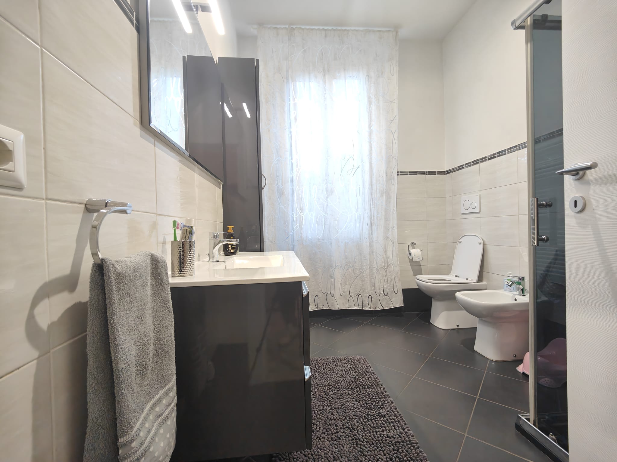 Con accesso indipendente tramite un’ampia scalinata esterna che conduce al portone blindato, l’abitazione si apre su un grande soggiorno con termocamino, una cucina abitabile luminosa, una camera matrimoniale, una cameretta e un ampio bagno con vasca e doccia.