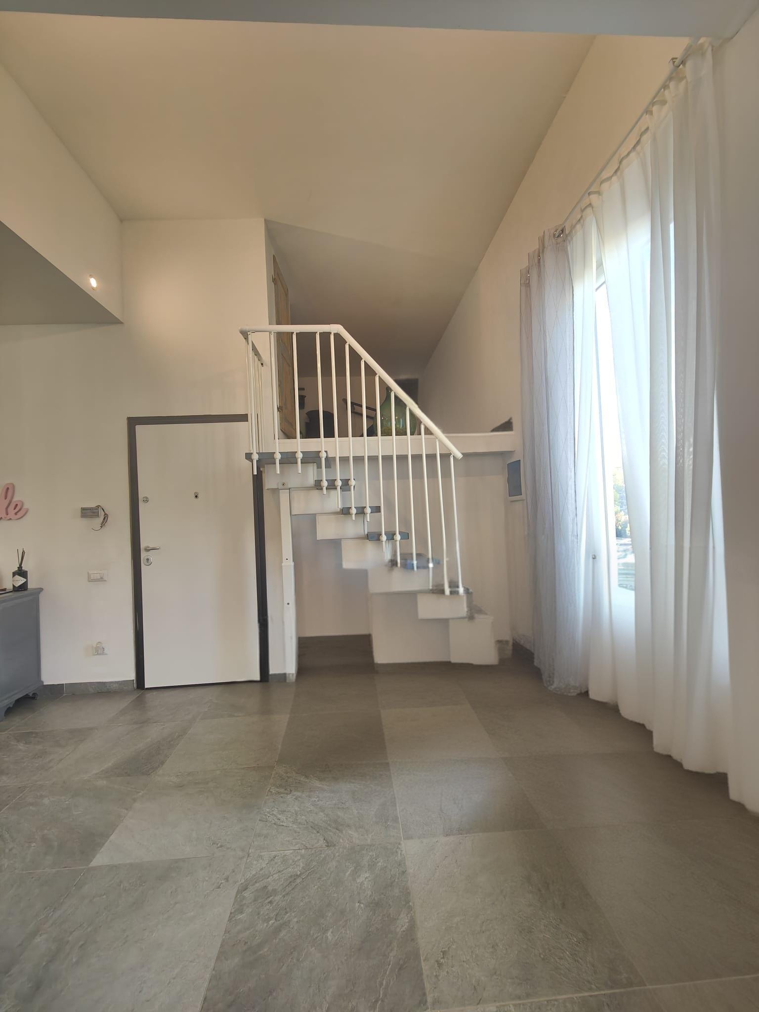 Dal soggiorno una scala in legno conduce a un delizioso soppalco, ideale come studio o area relax, con possibilità di ampliamento dalla soffitta.