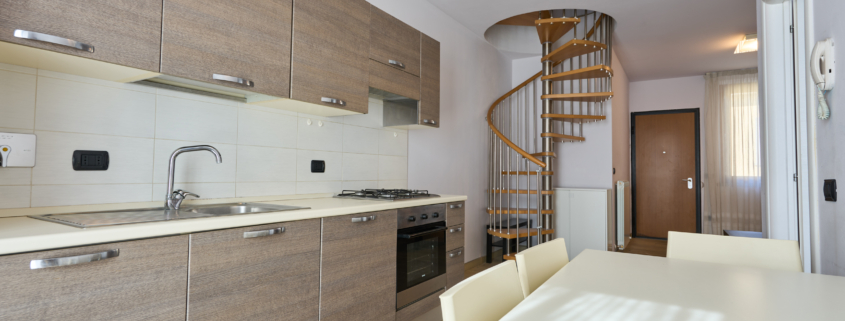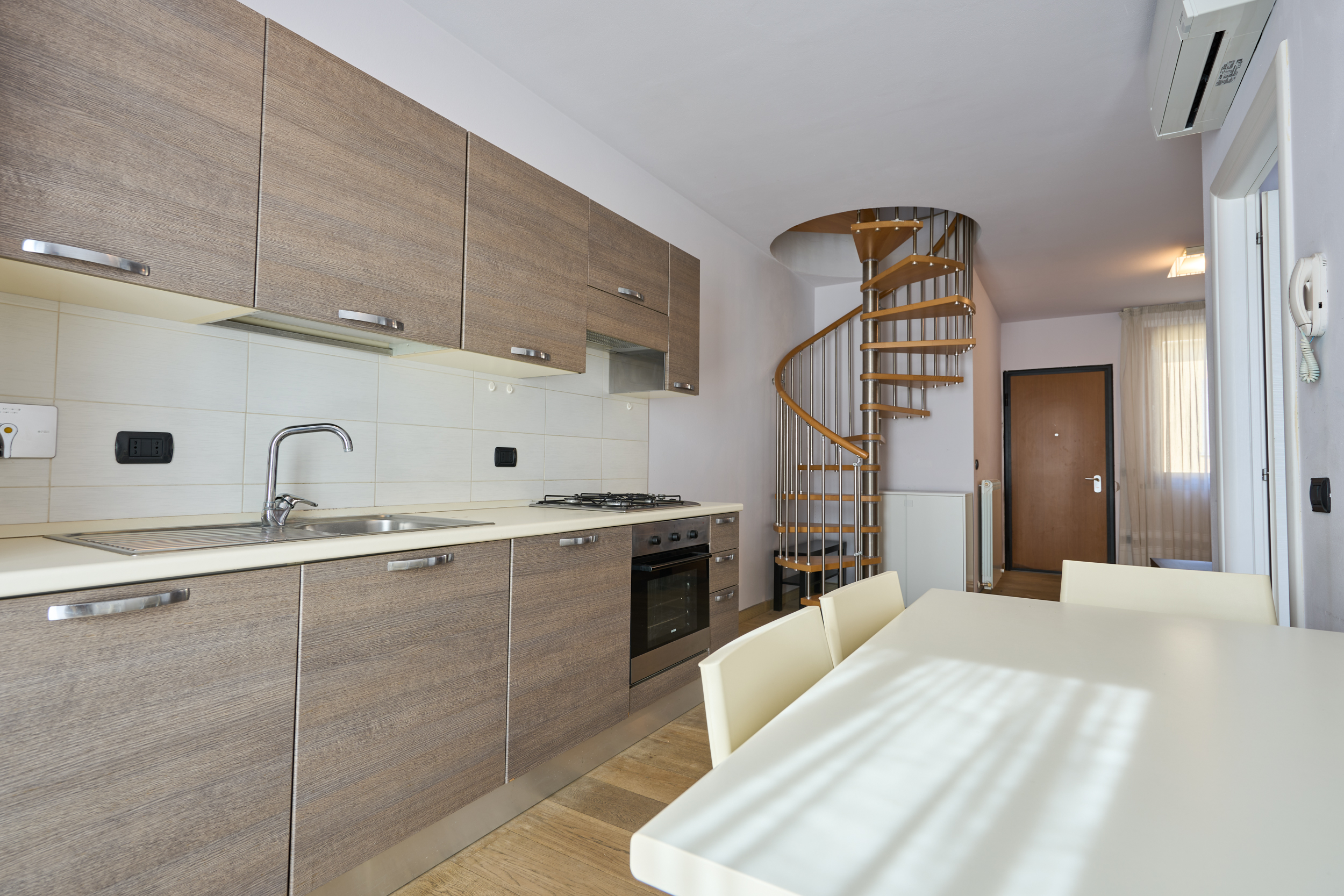 L’accesso avviene tramite scala esterna a comune. Varcata la porta d’ingresso, si viene accolti da un ampio e luminoso soggiorno, perfetto per momenti di relax e convivialità, con collegamento diretto alla cucina abitabile, dotata di accesso al balcone.