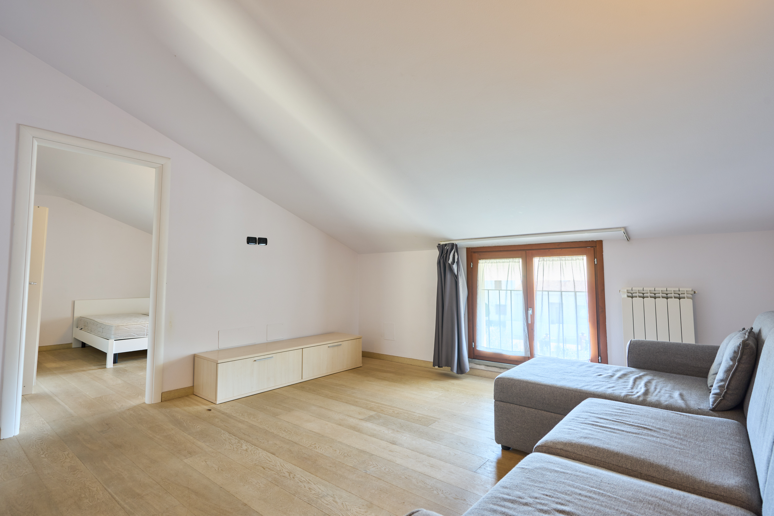 Attraverso una comoda scala interna si accede al piano superiore, dove troviamo una mansarda ampia e luminosa, ideale come seconda camera, zona living o suite privata, impreziosita da:
