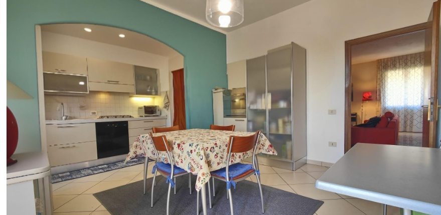 La cucina abitabile, ampia e funzionale, è affiancata da una spaziosa sala da pranzo e da un praticissimo vano dispensa, pensato per organizzare al meglio ogni necessità. Da qui, si accede a una terrazza attrezzata, dotata di lavatoio e punto acqua, uno spazio perfetto per stendere il bucato e per ogni esigenza domestica.