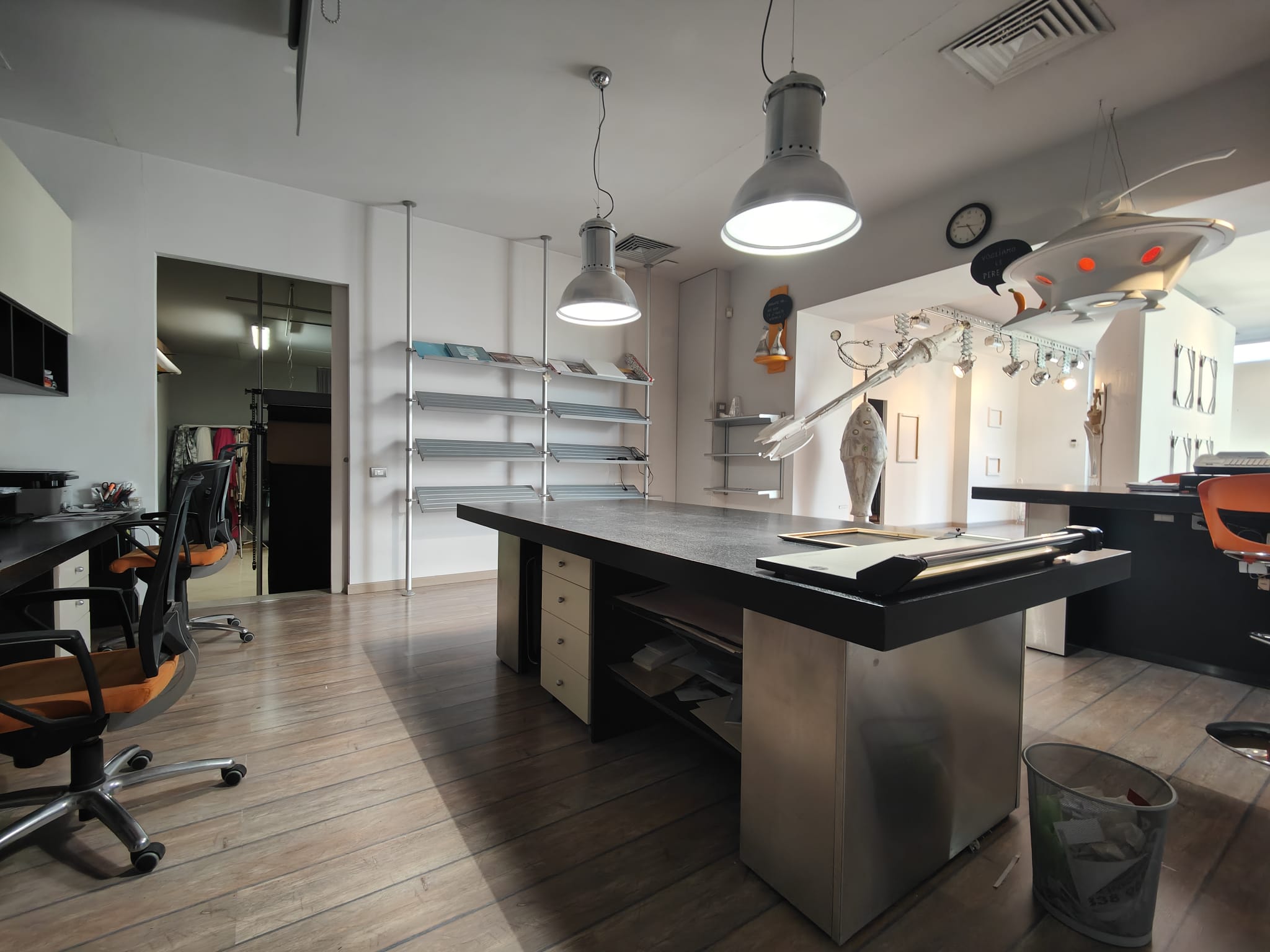 L’immobile, luminoso e curato, si apre su un ampio salone d’ingresso che accoglie con eleganza e ampiezza. Gli ambienti interni sono attualmente suddivisi in tre sale comunicanti, con la possibilità di rimodulare gli spazi in base alle esigenze della propria attività.