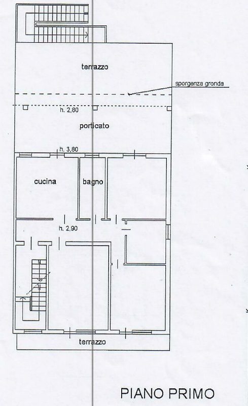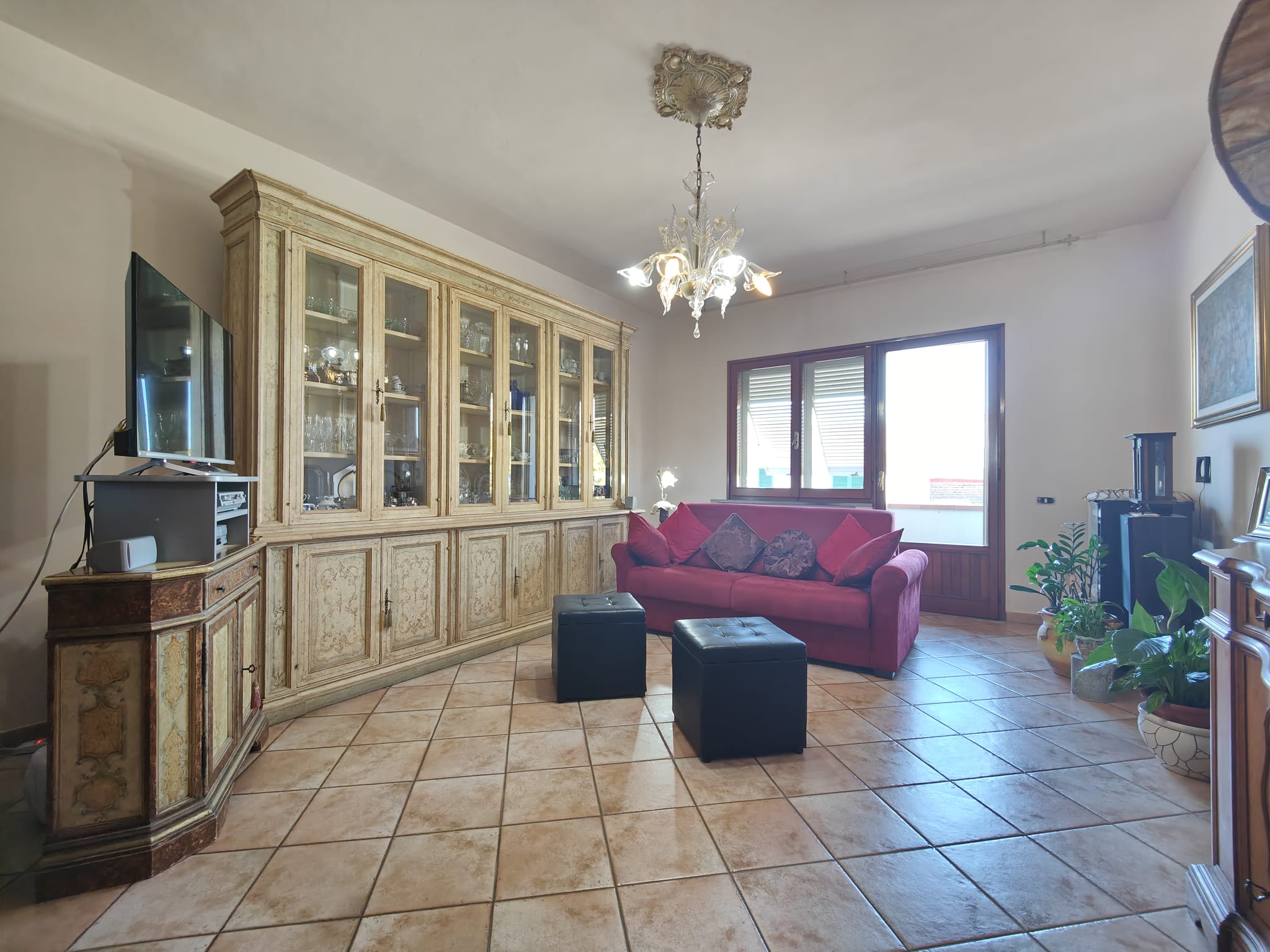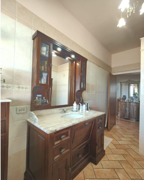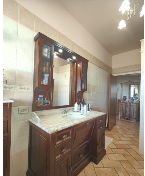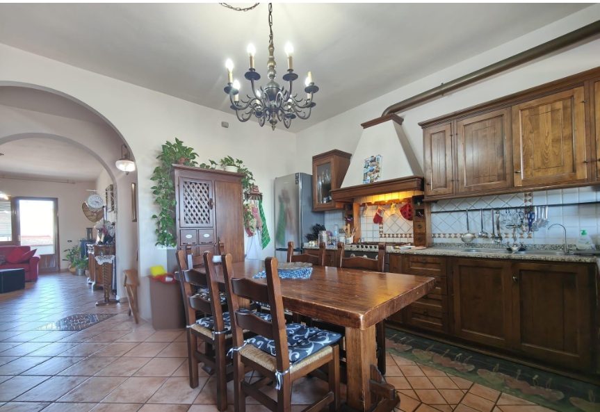 • Piano Primo: appartamento principale di circa 135 mq con soggiorno ampio e luminoso con balcone, cucina abitabile con accesso a una grande terrazza (36 mq di loggiato + 48 mq scoperti) collegata da scala esterna al terreno coltivato a olivi e a un resede carrabile con cancello dalla strada principale, dotato di zona coperta per posti auto in totale di mq 550 circa. Completano il piano una camera matrimoniale con accesso alla terrazza, una  camere matrimoniali con accesso al balcone , una cameretta e un bagno con doccia finestrato la terrazza di mq 12 circa .