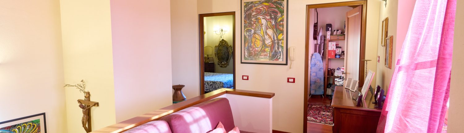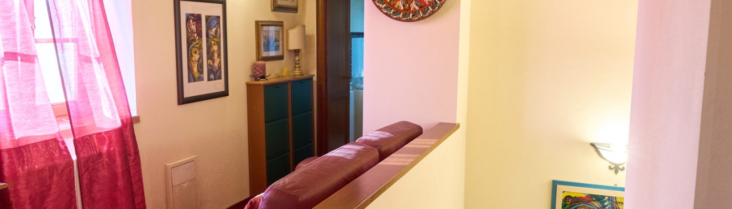 La splendida scala in pietra serena conduce al piano superiore, dove si apre la zona notte: