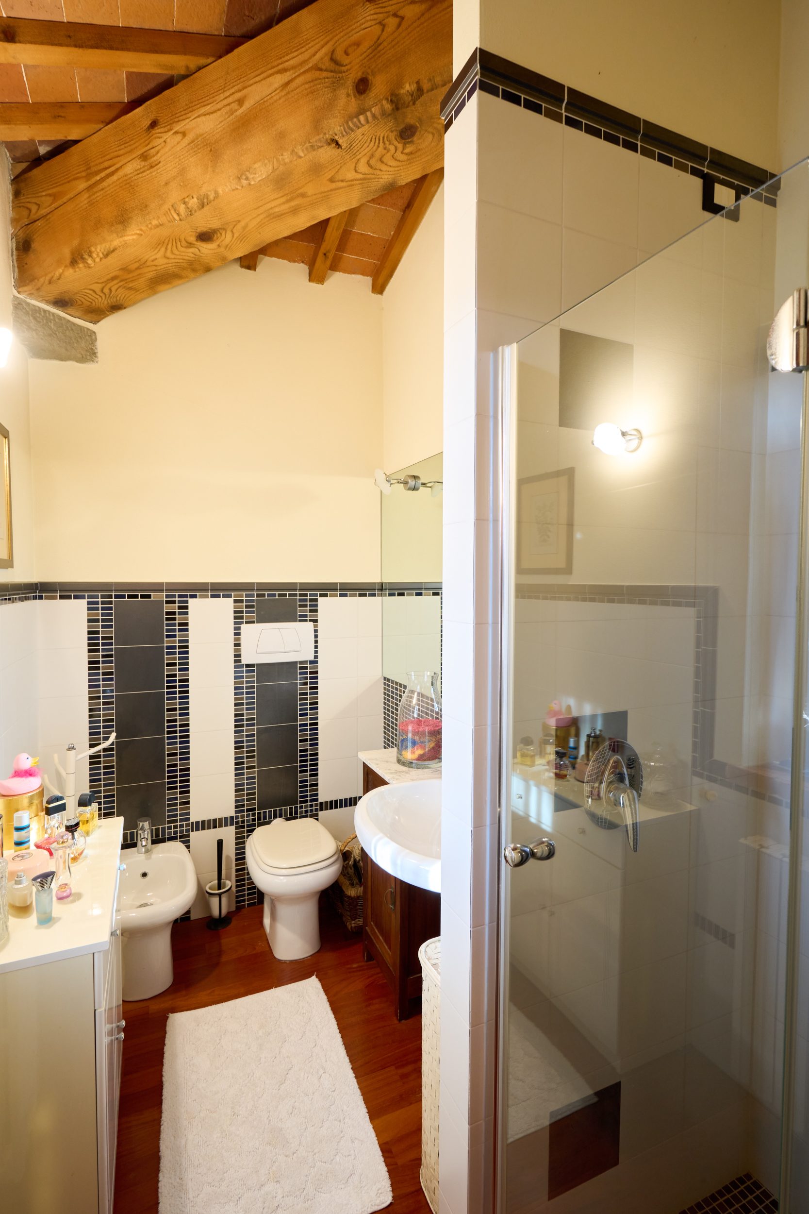 un ulteriore bagno finestrato con doccia, raffinato e funzionale.