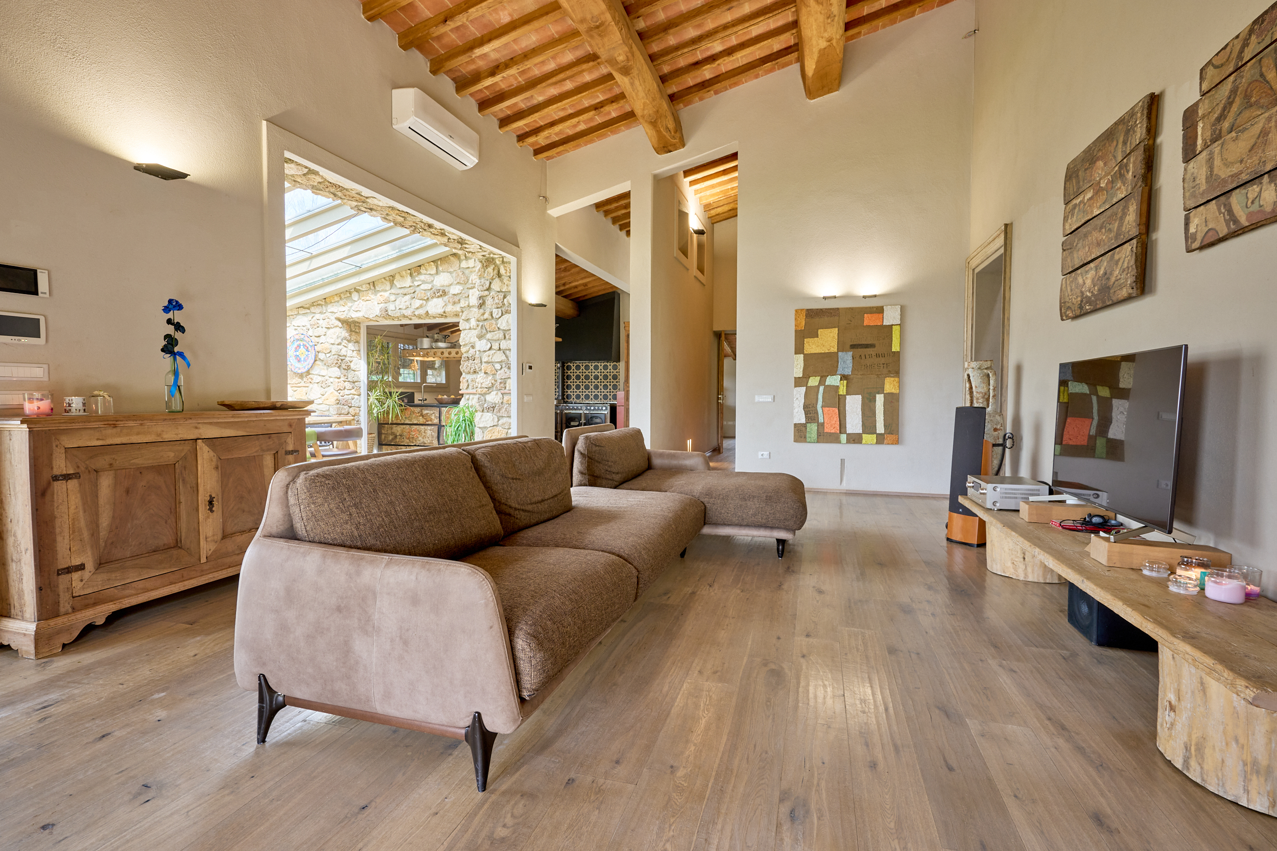 Immersa nella quiete autentica della campagna toscana, questa straordinaria villa rappresenta molto più di una semplice proprietà: è un luogo dell’anima, dove natura, luce e architettura dialogano in perfetta armonia.