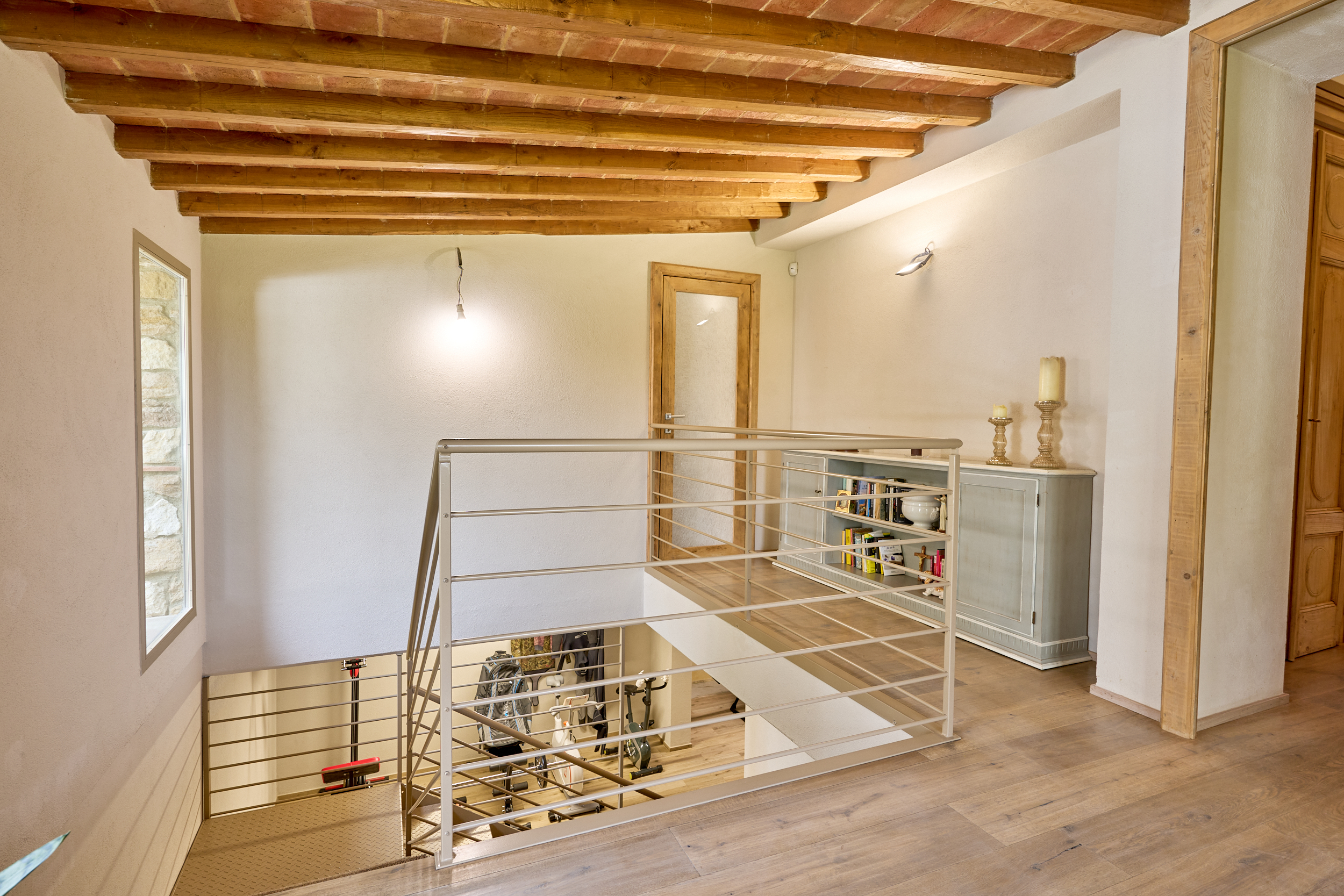 Il piano seminterrato, ampio e ancora da definire, rappresenta una tela bianca: una spa privata, un rifugio benessere, una zona dedicata agli hobby o all’accoglienza degli ospiti , per il momento adibito a palestra . Qui, ogni desiderio può prendere forma.