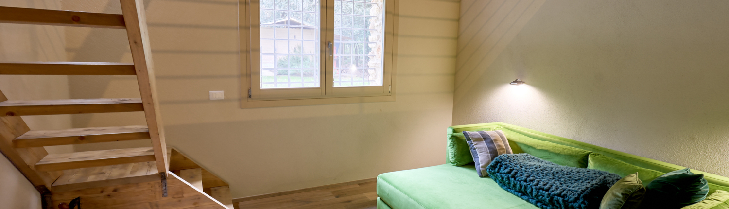 La zona notte è pensata come uno spazio intimo e accogliente: