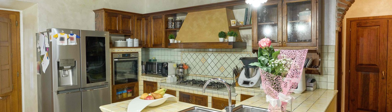 Tutti gli ambienti al piano terra sono comunicanti in stile open-space caratterizzati dalla presenza di grandi archi in mattoni con capitelli in pietra serena (recuperati dai vecchi scalini della dimora) e travi a vista sul soffitto.