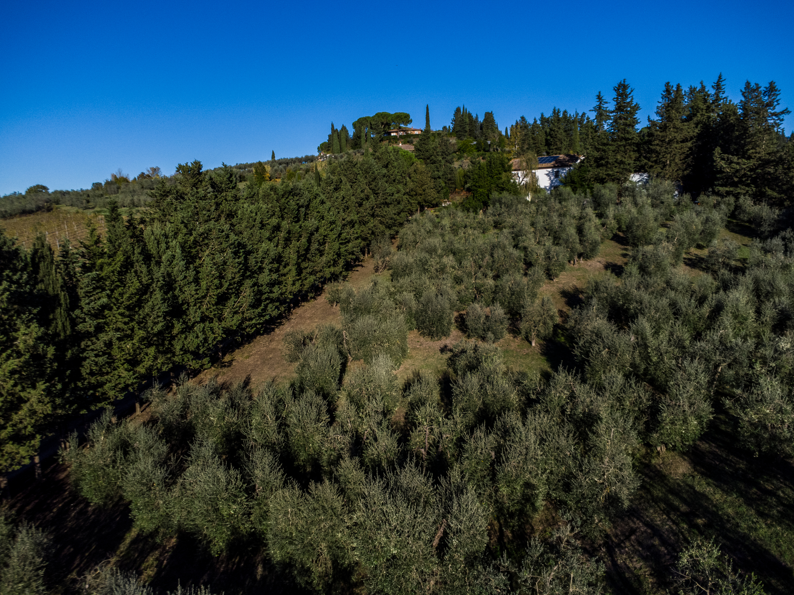 L’accesso avviene tramite un suggestivo viale privato di cipressi lungo circa 300 metri, che attraversa i vigneti e gli oliveti di proprietà e conduce alla villa principale, posta in posizione dominante con affacci panoramici sul verde circostante.