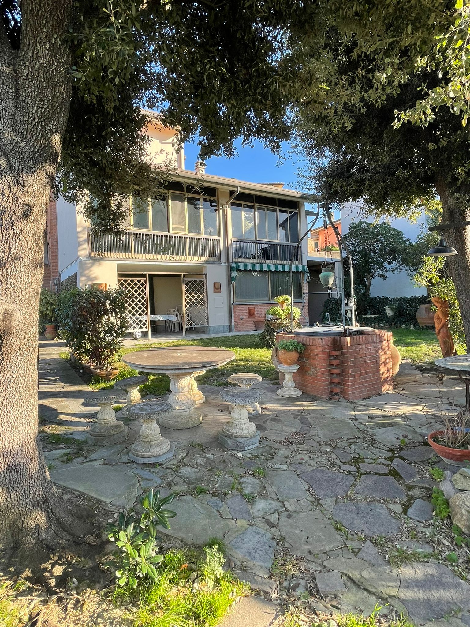 Tutta la proprietà è circondata da un ampio giardino, con la possibilità di parcheggiare 1-2 auto sotto loggia, tutti gli ingressi sono indipendenti, la villa è situata in una zona tranquilla ma ben collegata, ideale per chi cerca ampi spazi e privacy.